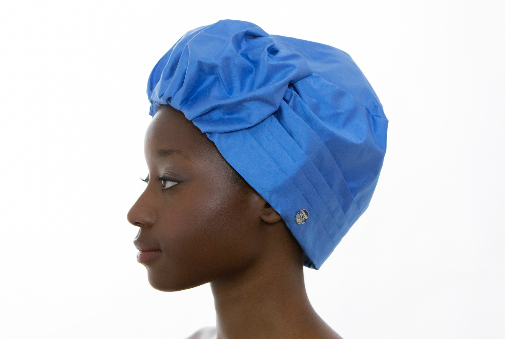 A luxurious and beautiful handmade turban. This is a unique head accessory designed by Merrayah. Each piece has been carefully hand made with local artisans using the finest materials to become an essential piece in your wardrobe. Can be worn in different styles.