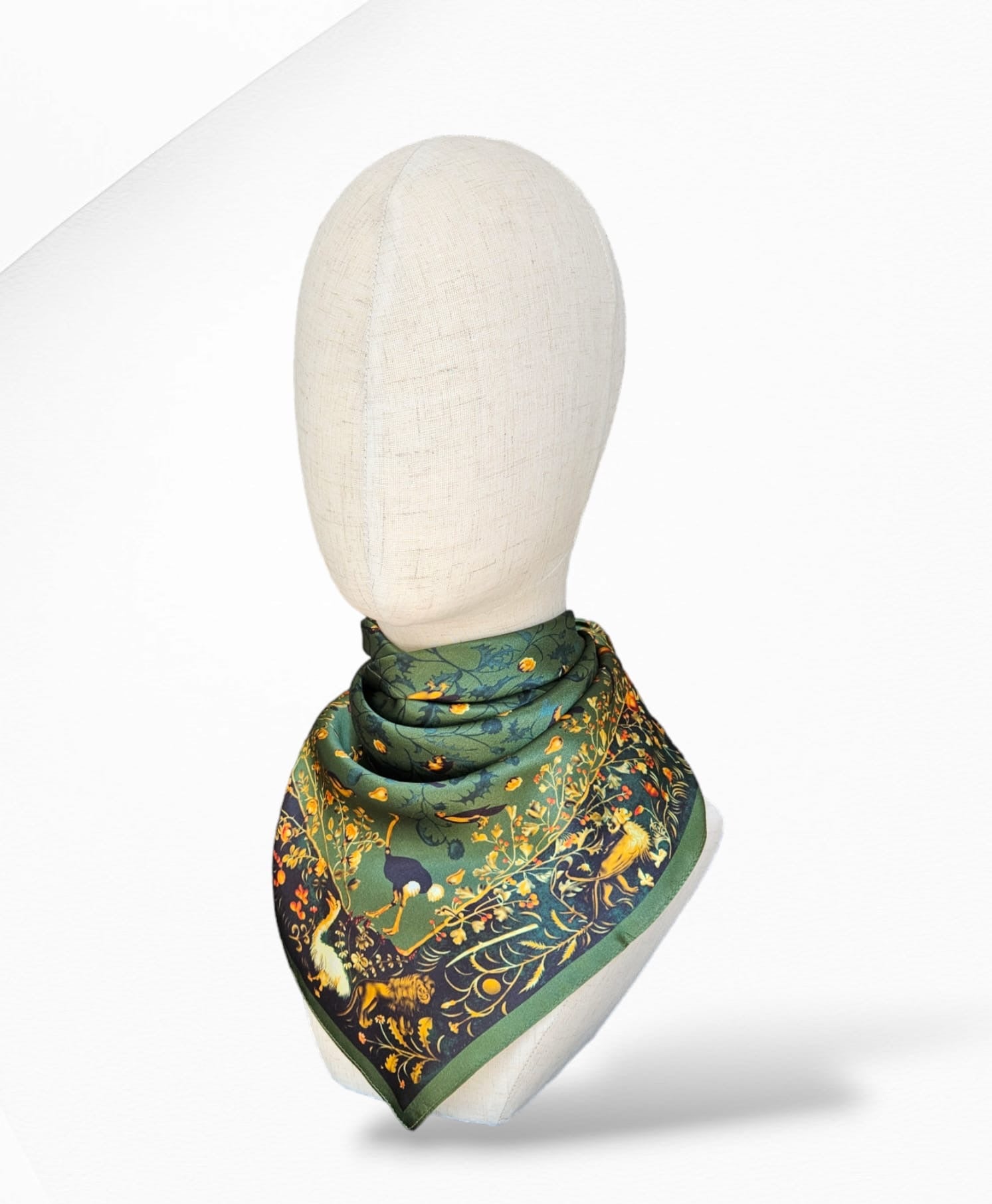 A luxurious and beautiful silk scarf. This is a unique accessory by Merrayah. Each piece has been carefully hand made with local artisans using the finest materials to become an essential piece in your wardrobe.