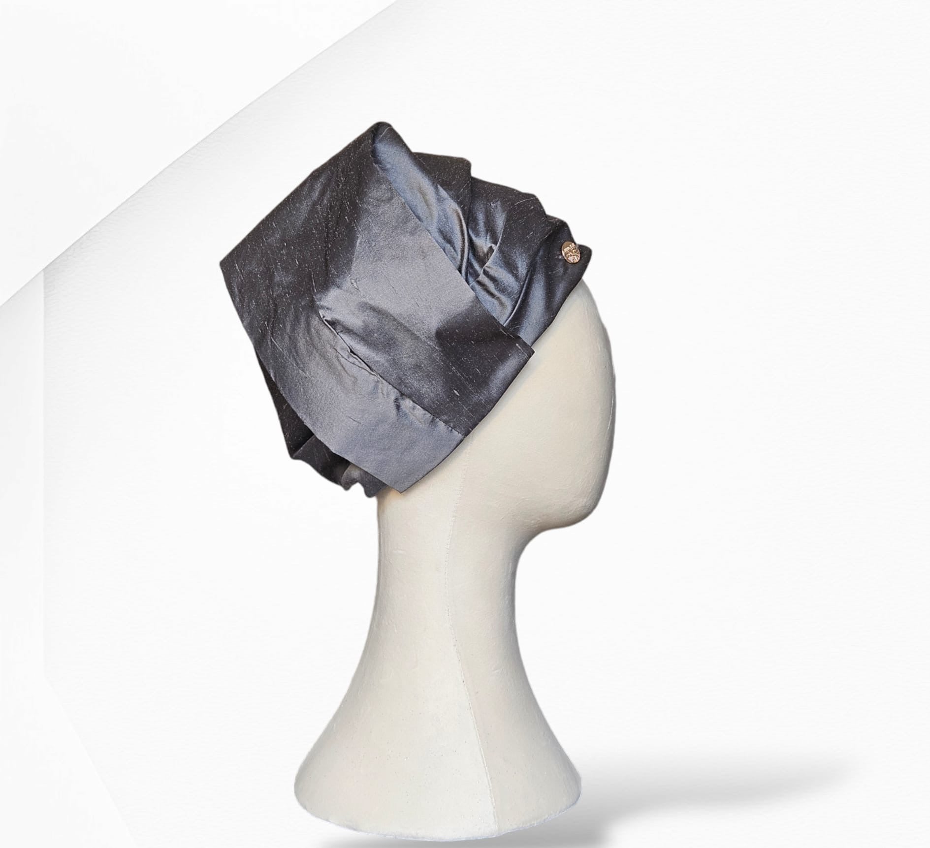 A luxurious and beautiful handmade silk turban. This is a unique head accessory designed by Merrayah. Each piece has been carefully hand made with local artisans using the finest materials to become an essential piece in your wardrobe and a unique head accessory. Can be worn in different styles.